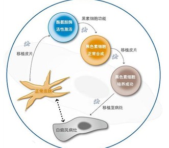 4、具有提高免疫功能抗复发之功能。 本疗法打破传统黑色素细胞,局部不能提供黑色素细胞营养液,局部免疫治疗,彻底提高局部免疫功能,自然生长黑色素,自然保护黑色素细胞,达到不复发的功能。