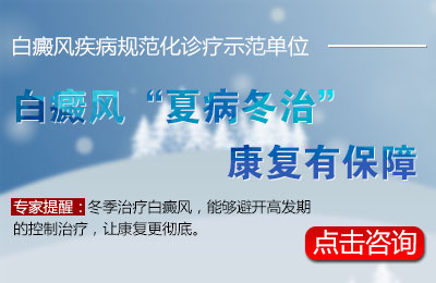 1、如果患者是在冬季诱发的白癜风,千万不要等到夏天再去治疗,这样不但会延误病情,还会增加治愈的难度。白癜风初期白斑的范围比较小,皮损内尚存有具有“生命力”的黑色素细胞,只要通过正确的治疗引导,黑色素是可以繁殖增多的,此时白癜风患者如果能选择正确的治疗方案,通过针对性的治疗,白斑是可以完全消失的。 >>>早期治疗对于白癜风患者的重要性有哪些?在线咨询
