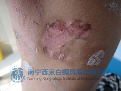 (患者综合治疗两个疗程后,白斑处照片,皮损基本消失,白斑减淡)