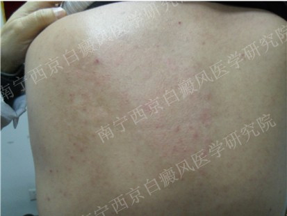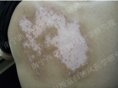 ▲病史:2010年4月发现背部有白斑出现,尝试治疗无效后,放弃治疗。经人介绍来我院治疗。