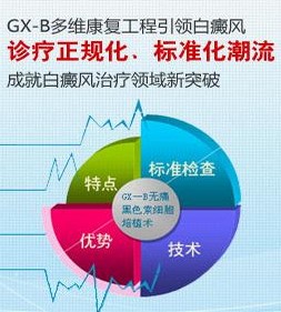 2、多维治疗,疗效巩固。传统西医重病症消除,见效快,但是易复发;单纯依靠中医治疗调理疗程漫长,且治疗过程中易受其它因素干扰而影响疗效。“分型分诊、多维治疗”针对发病原因,从多角度解决黑色素细胞和细胞生存环境这两个关键性问题,提高治愈率;另外通过调整恢复机体功能、加强皮肤自我养护功能等多种手段,巩固治疗效果,大大缩短疗程,并将复发率降到最低。